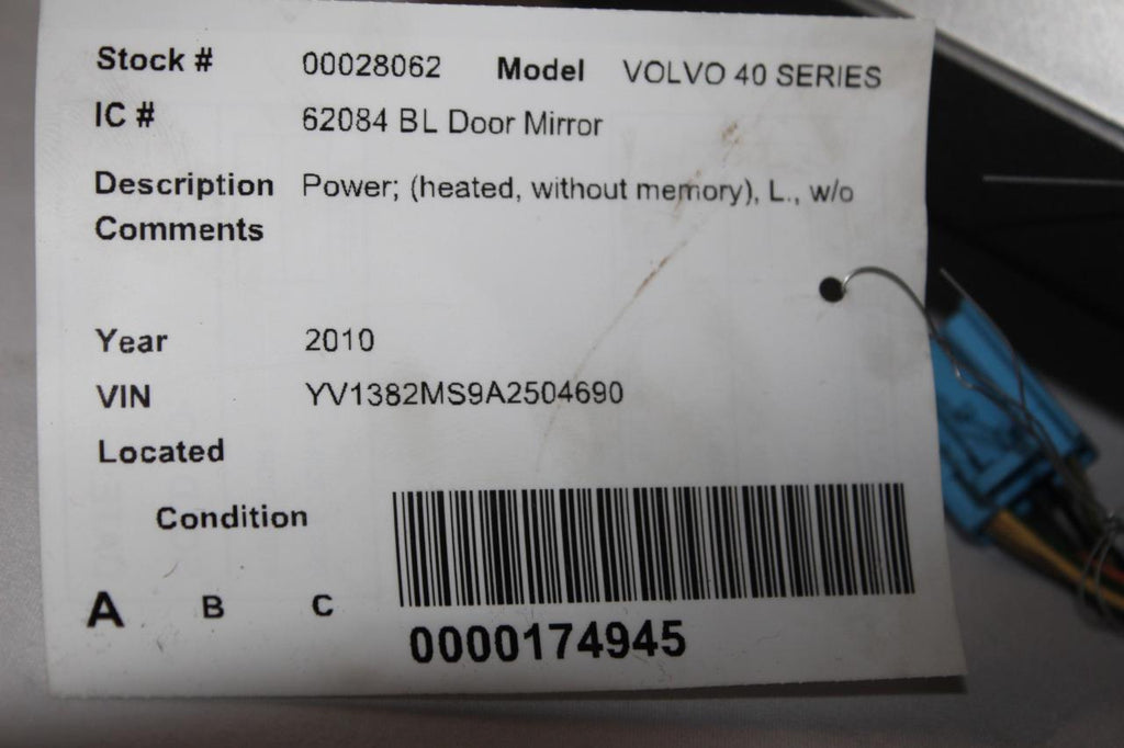 2007-2011 VOLVO 40 SERIES DRIVER LEFT SIDE POWER DOOR MIRROR SILVER METALLIC
