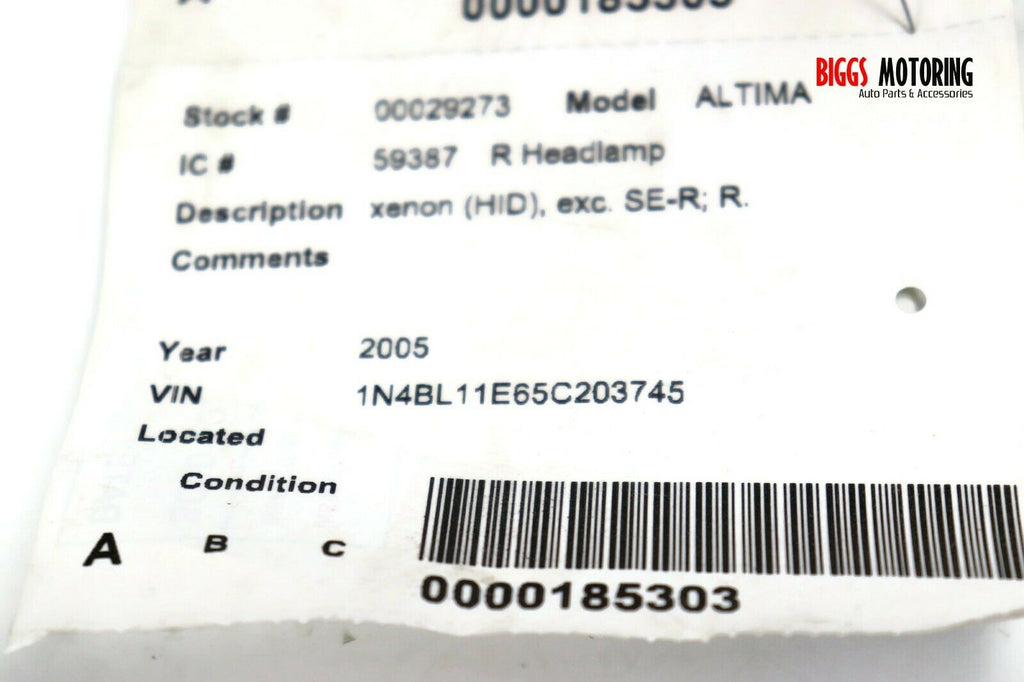 2004-2006 Nissan Altima Passenger Right Side Front Head Light 29273