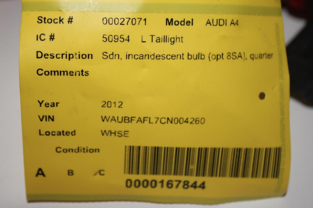 2010-2012 AUDI A4 S4 DRIVER LEFT SIDE REAR TAIL LIGHT 27071 RE#BIGGS