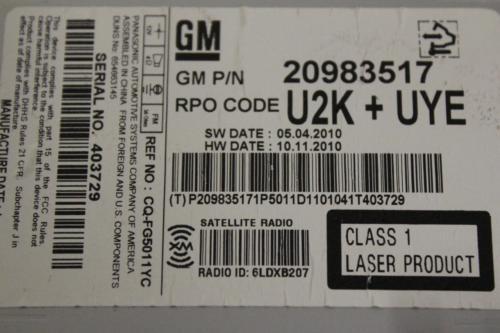 11-12 Chevy Cruze Camaro Cd Player Aux In A/C Heater Climate Control 94563269