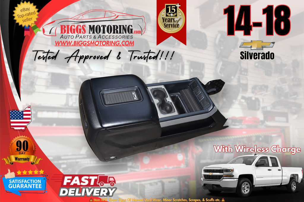 14-18 Factory Oem Chevy Silverado Black Center Floor Console W/ Wireless Charger