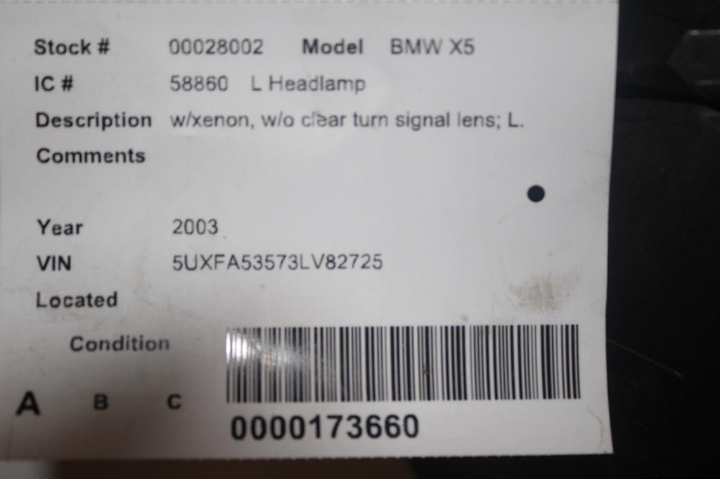 2000-2003 BMW X5 FRONT DRIVER SIDE HEADLIGHT 28002