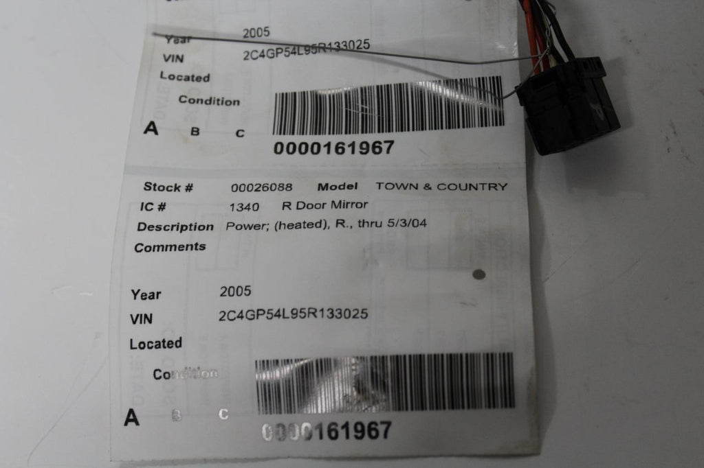 2001-2007 CHRYSLER TOWN AND COUNTRY RIGHT PASSENGER POWER SIDE VIEW MIRROR