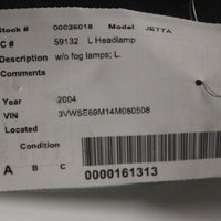 2002-2006 VOLKSWAGEN JETTA FRONT DRIVER SIDE HEADLIGHT 26018