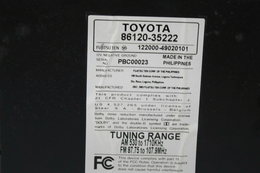 2003-2005 Toyota 4Runner 16845 Radio Stereo Cassette Tape Cd Player 86120-35222