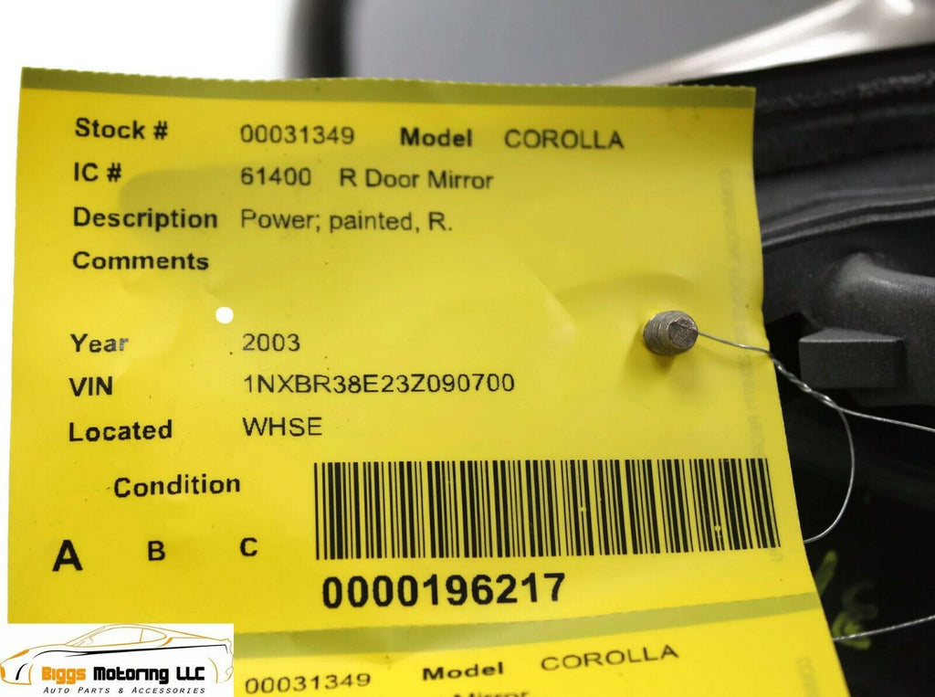 2003-2008 Toyota Corolla Passenger Right Side Power Door Mirror Gold 31349
