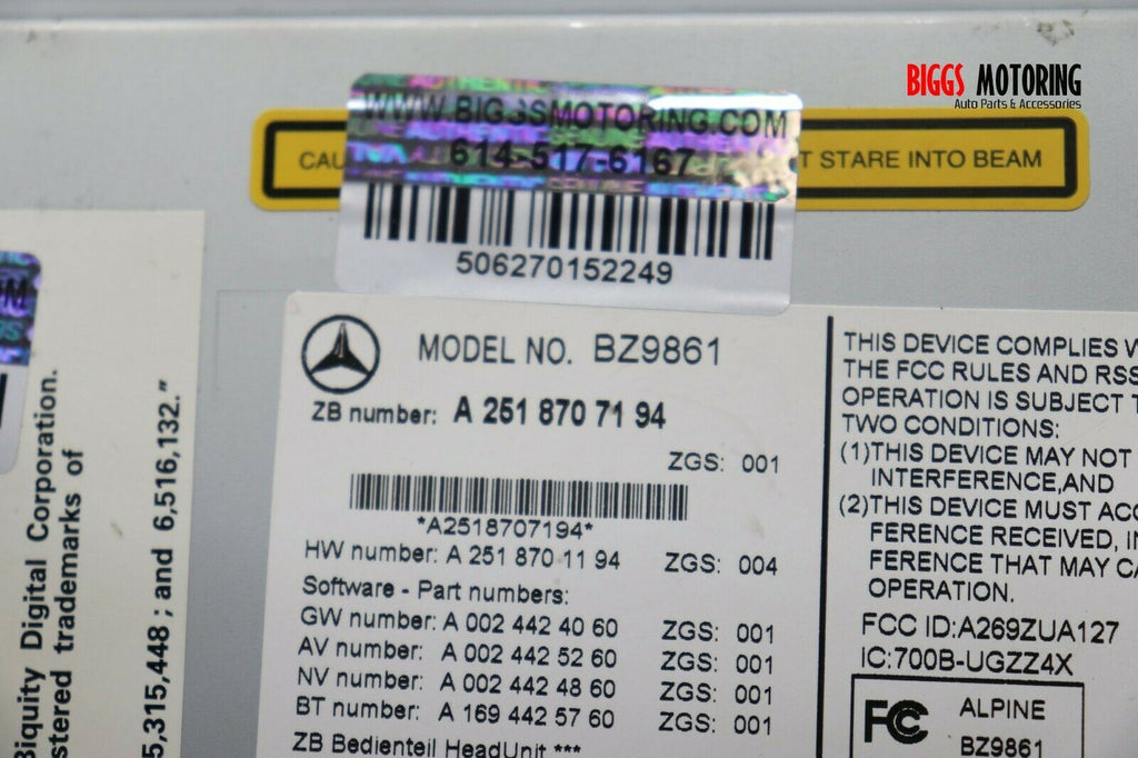 2006-2009 Mercedes Benz W251R350 R500 Navigation Radio Cd Player A2518707194