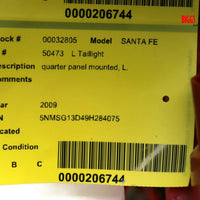 2007-2009 Hyundai Santa Fe Driver Left Side Rear Tail Light 32805