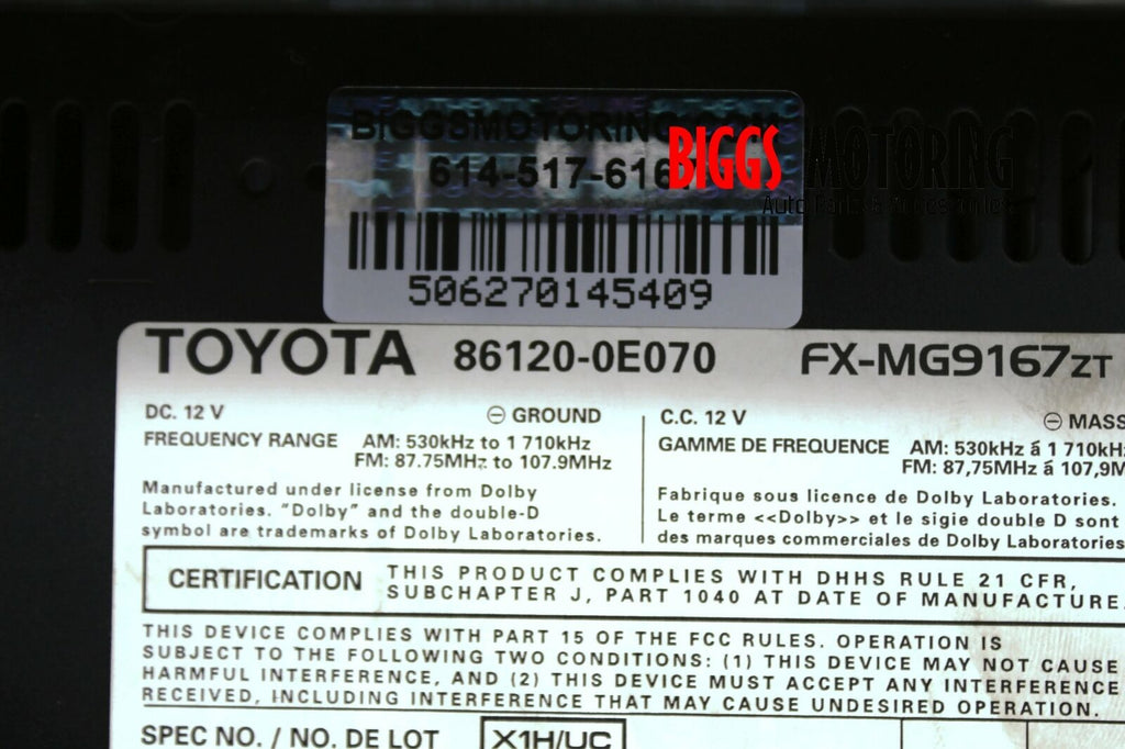 2007-2009 Lexus RX350 Radio Stereo Cassette Cd MP3 Player 86120-0E070