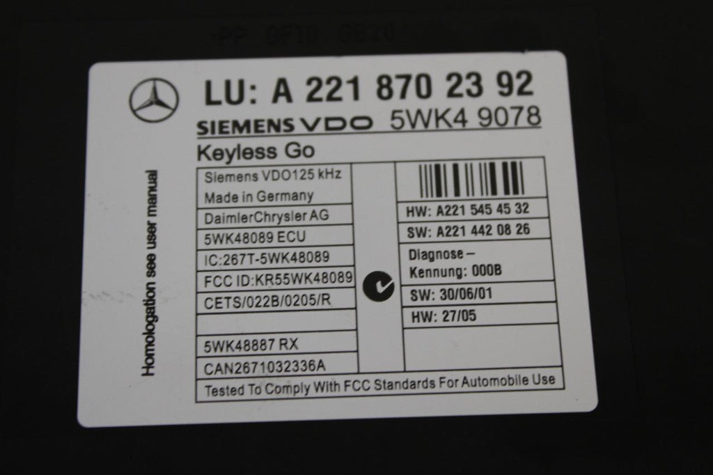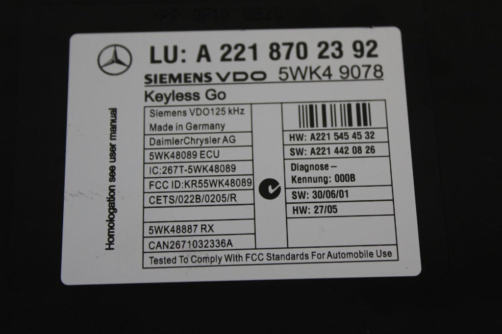 2007-2009 Mercedes Benz S550 Multifunction Entry Control Module