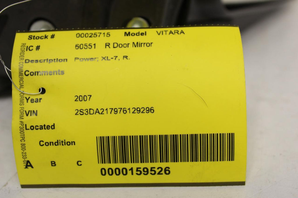 2007-2009 SUZUKI VITARA RIGHT PASSENGER POWER SIDE VIEW MIRROR