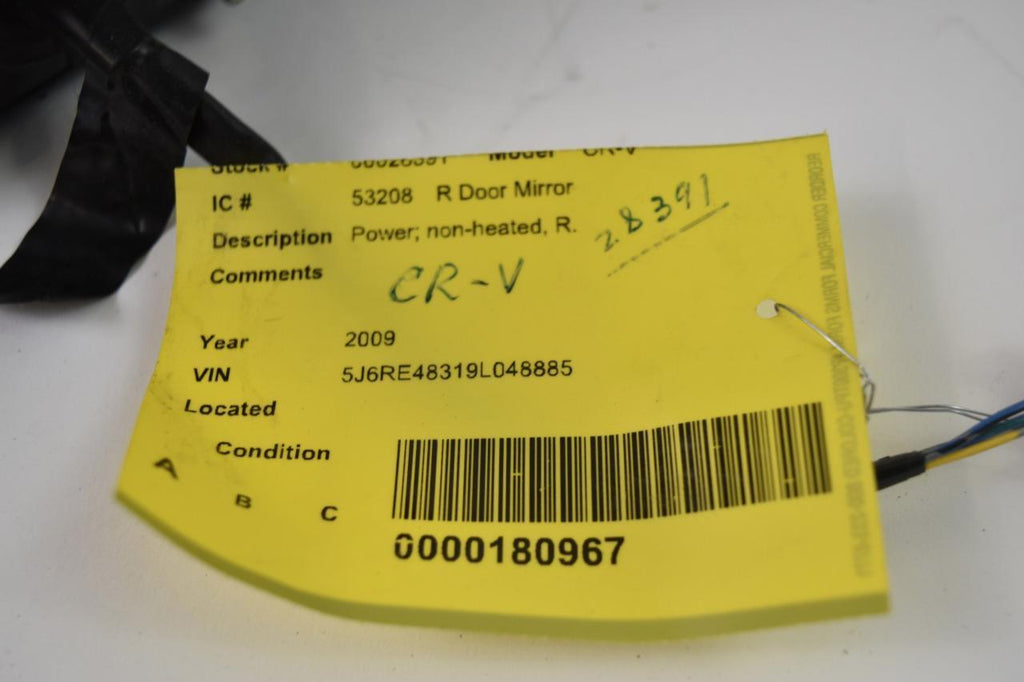 2007-2011 HONDA CR-V PASSENGER SIDE POWER DOOR MIRROR BLACK 28391