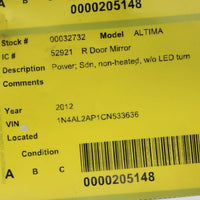 2007-2012 Nissan Altima Passenger Right Side Power Door Mirror Blue 32732