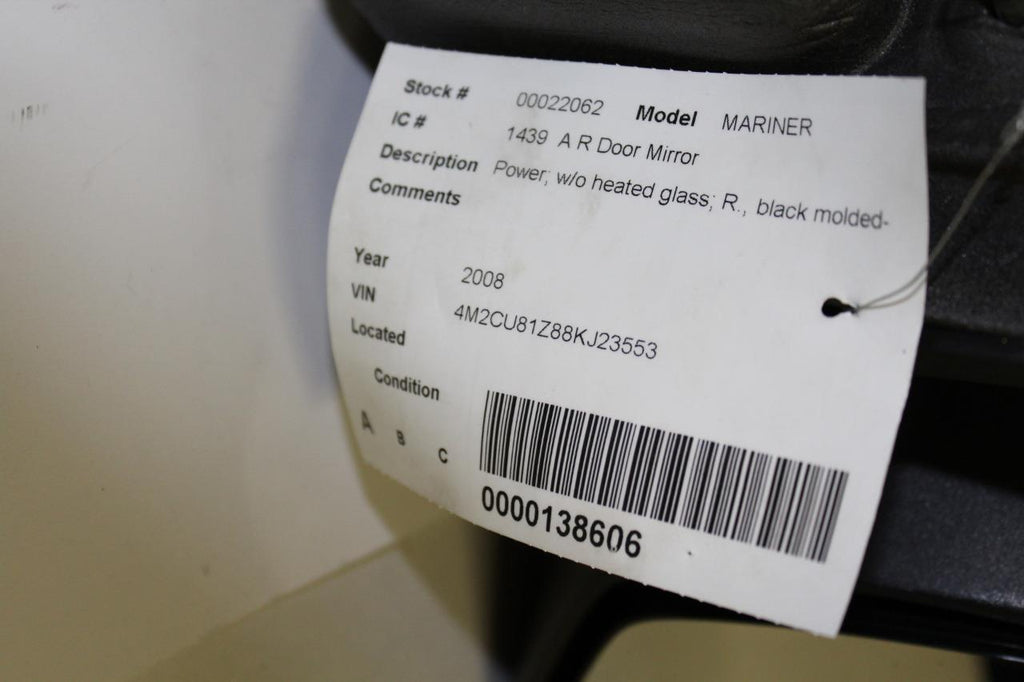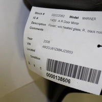 2008-2009 Ford Mercury Mariner Passenger Side Power Door Mirror Black 22062