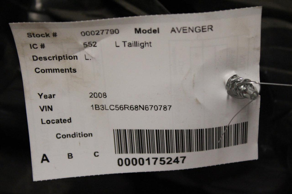 2008-2010 DODGE AVENGER DRIVER SIDE REAR TAIL LIGHT 27790