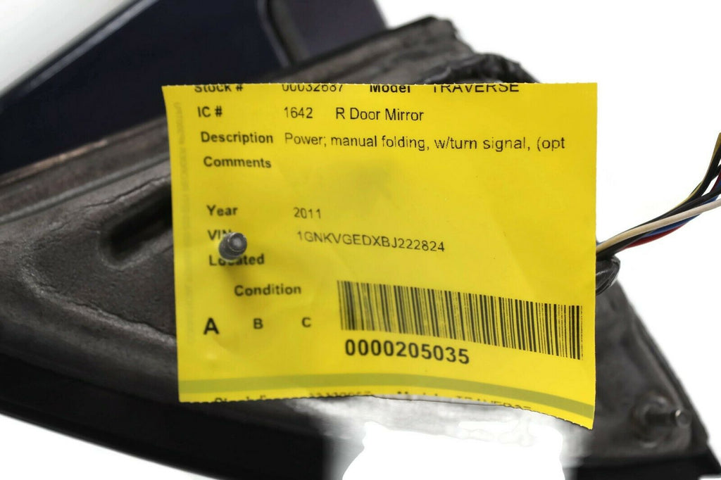 2008-2014 Chevy Traverse Passenger Right Side Power Door Mirror Blue 32887