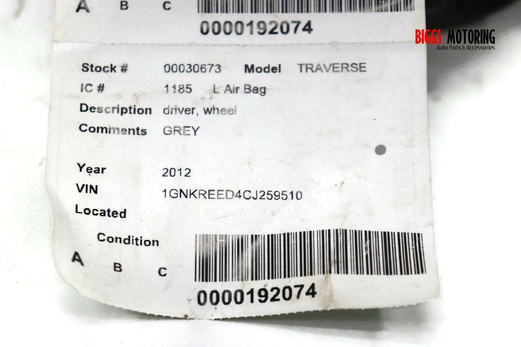 2009-2012 Chevy Traverse Driver Side Steering Wheel Air Bag Gray 30573