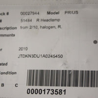2010-2011 TOYOTA PRIUS FRONT PASSENGER RIGHT SIDE HEADLIGHT 27944