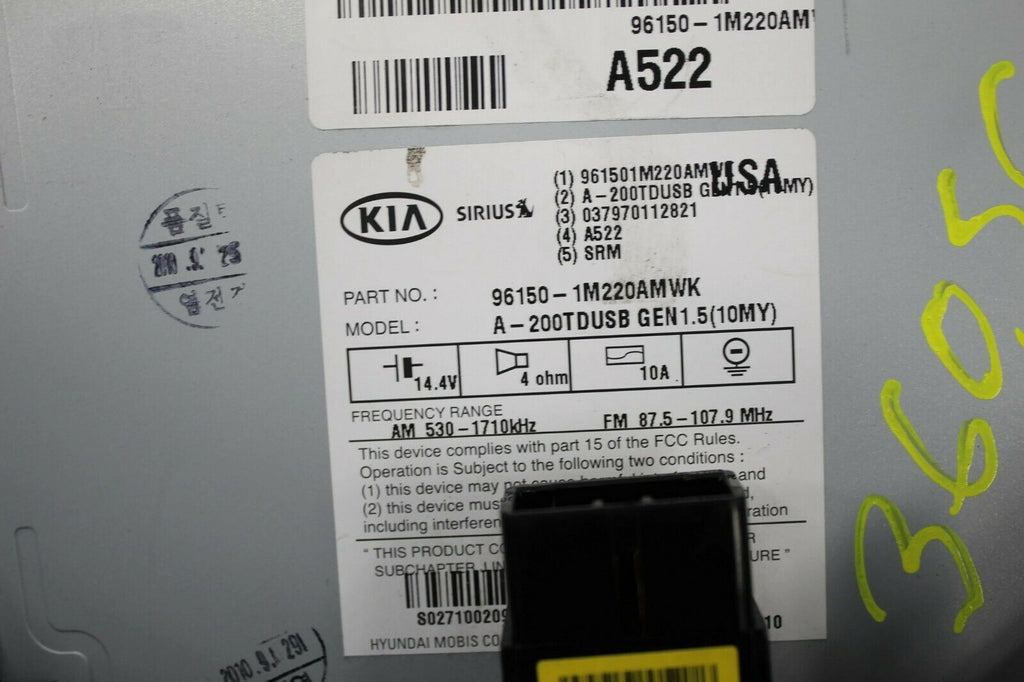 2010-2012 Kia Forte Sirius Radio Stereo Bluetooth Mp3 Cd Player 96150-1M220AMWK