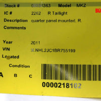 2010-2012 Lincoln MKZ Passenger Right Side Rear Tail Light 34363