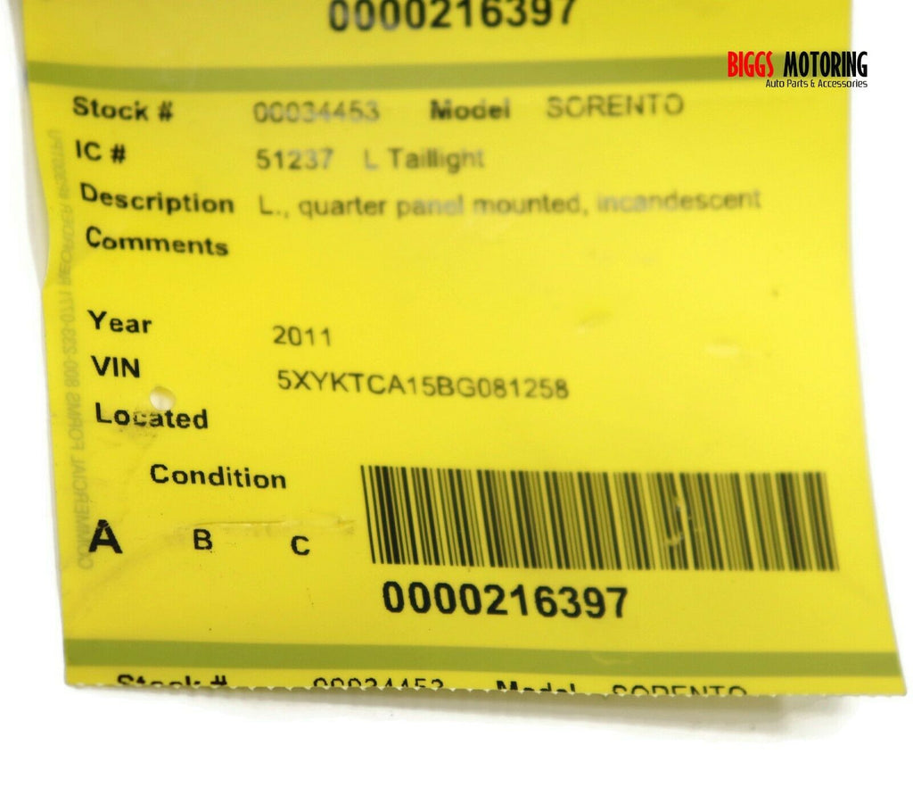 2011-2013 Kia Sorento Driver Left Side Rear Tail Light 34453