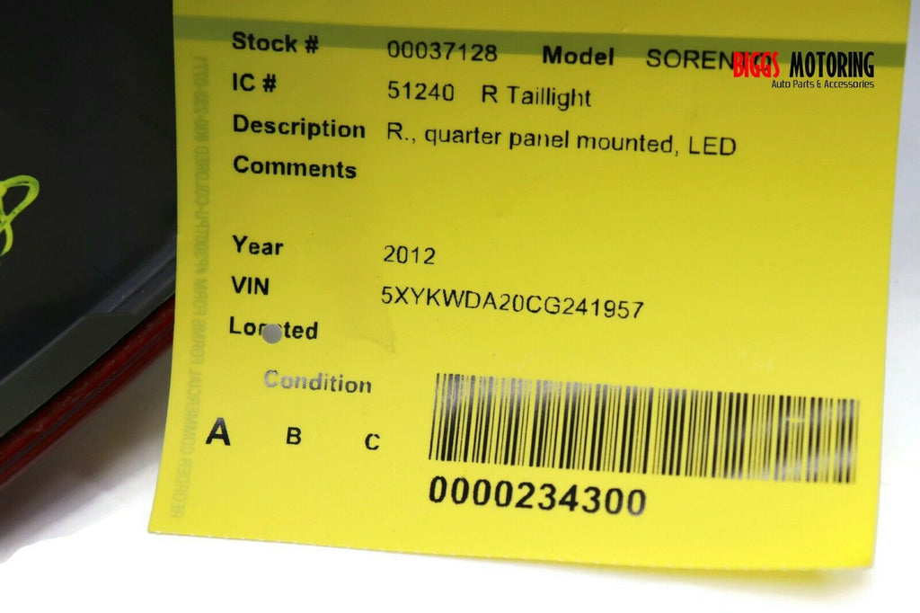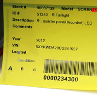 2011-2013 Kia Sorento Passenger Right Side Rear Tail Light 37128