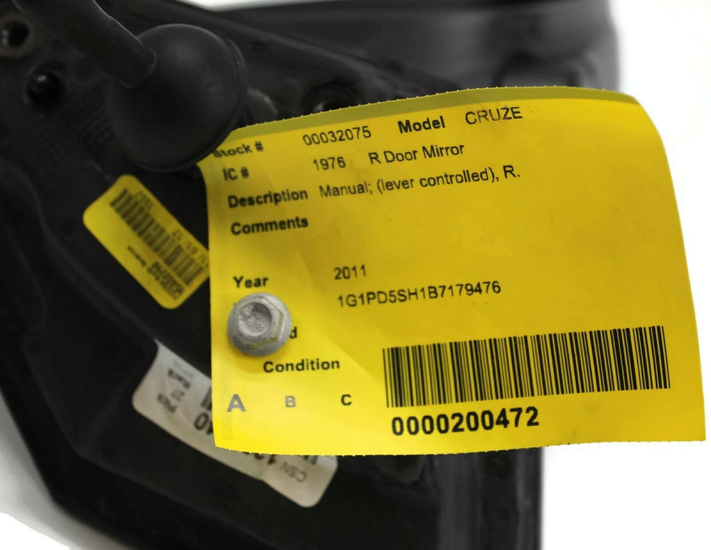 2011-2015 Chevy Cruze Passenger Right Side Manual Door Mirror Black 32075