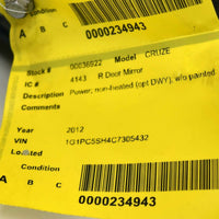 2011-2016 Chevy Cruze Passenger Right Side Power Door Mirror Black 36922