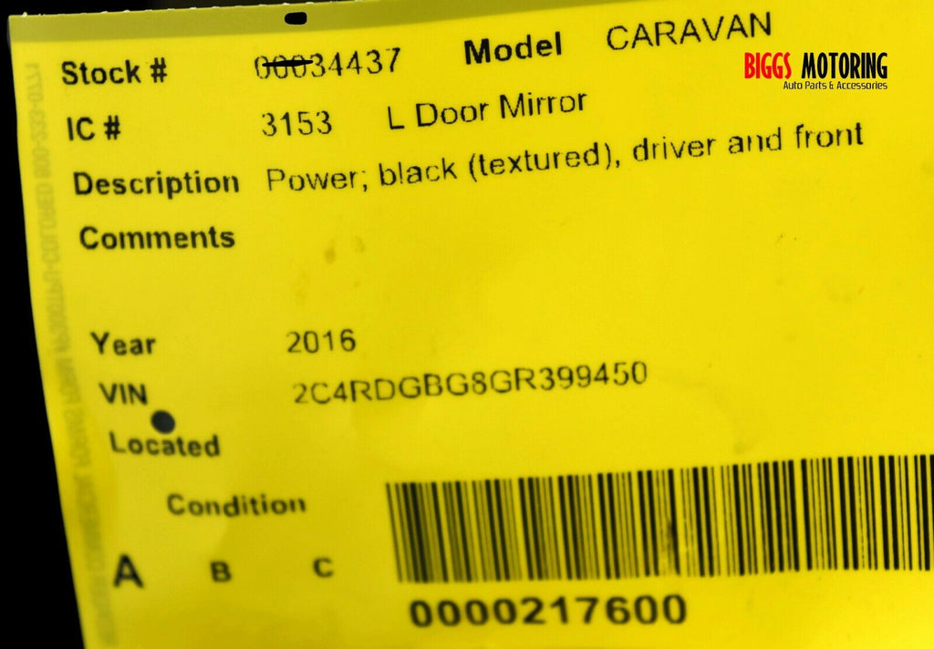 2011-2016 Dodge Caravan Driver Left Side Power Door Mirror Black 34437