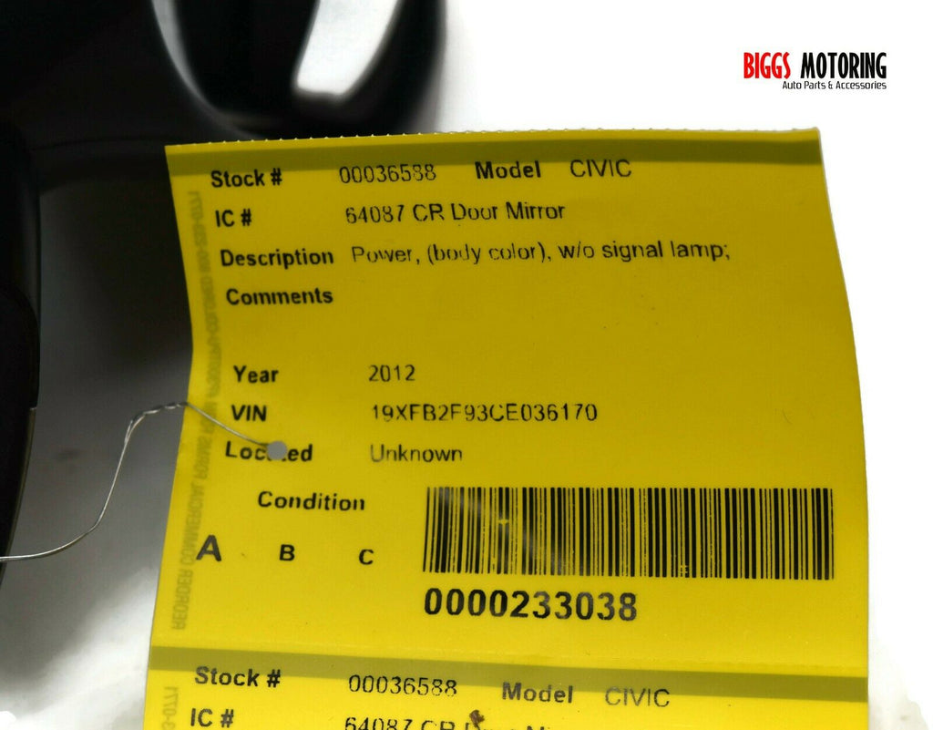 2012-2015 Honda Civic Passenger Right Side Power Door Mirror Silver 36588