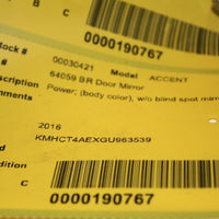 2012-2016 HYUNDAI ACCENT PASSENGER RIGHT SIDE POWER DOOR MIRROR BLUE
