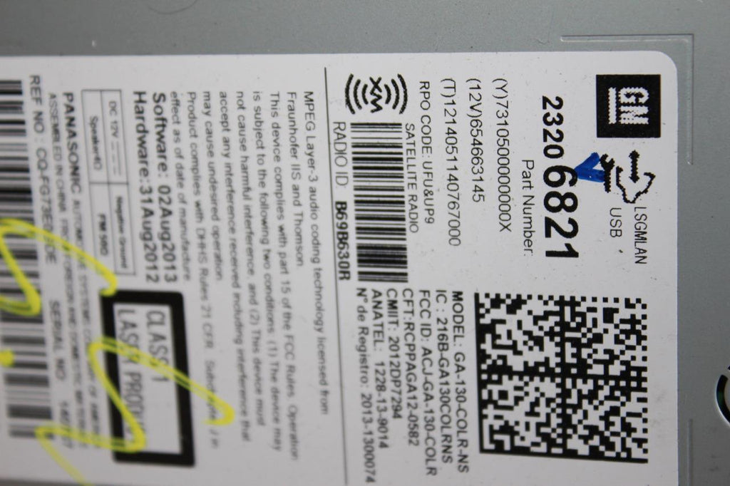 2013-2014 CHEVY CRUZE RADIO MECHANISM CD PLAYER 23206821