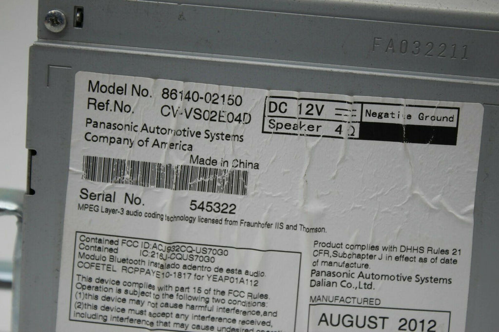 2013-2014 Toyota Corolla 57056 Radio Touch Screen Display Screen 86140-02150