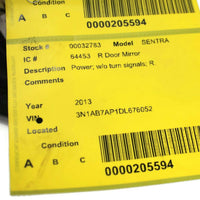 2013-2015 Nissan Sentra Passenger Right Side Power Door Mirror Black 32783