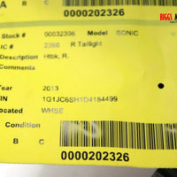 2013-2016 Chevy Sonic Passenger Right Side Rear Tail Light 32306