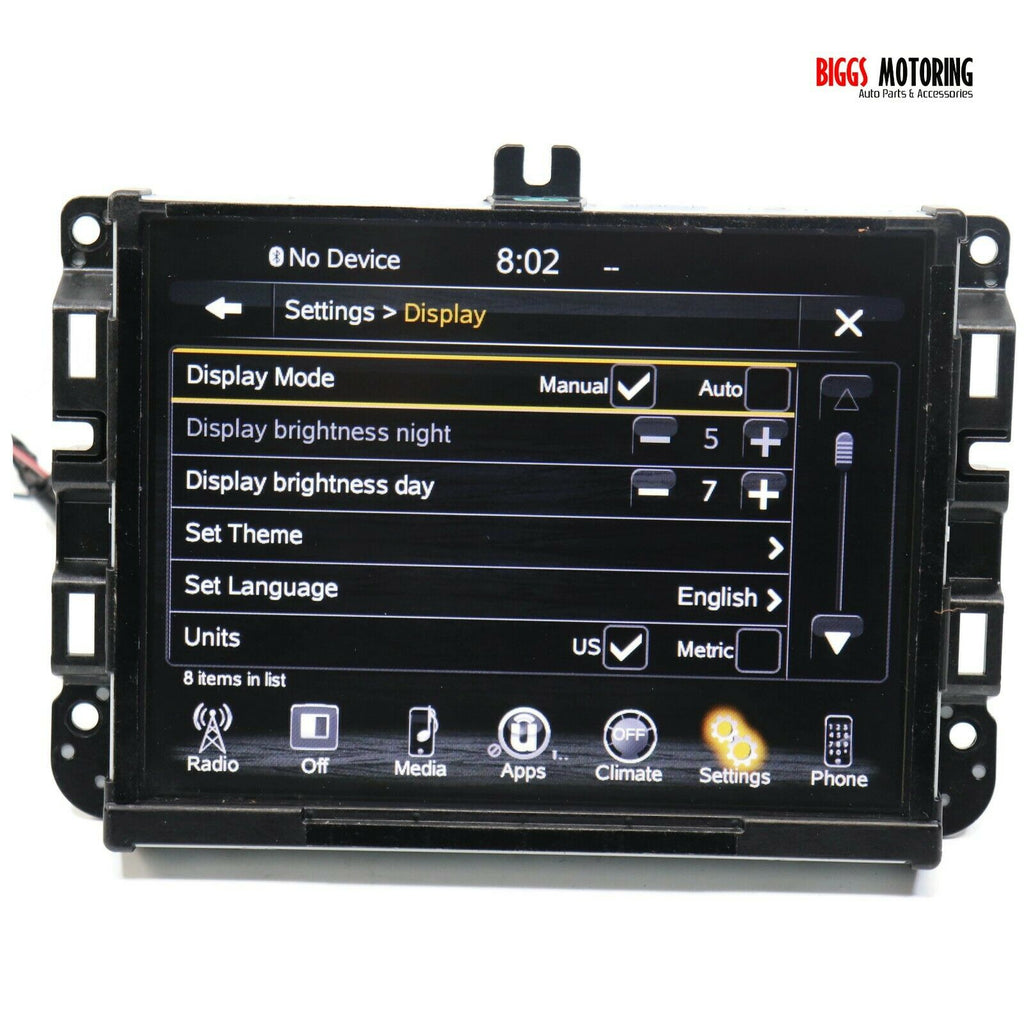 Fa ctory Oem Used 8.4'' Uconnect VP3 Radio Touch Display Screen Item is In Good Working Order, Ready To Be Installed... Item Will Show Signs Of Normal Used Wear, Minor Scratches, Scrapes, & Scuffs Etc See Pictures For Better Details