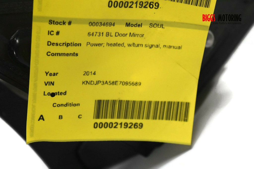 2014-2018 Kia Soul Driver Left Side Power Door Mirror Gray 34694