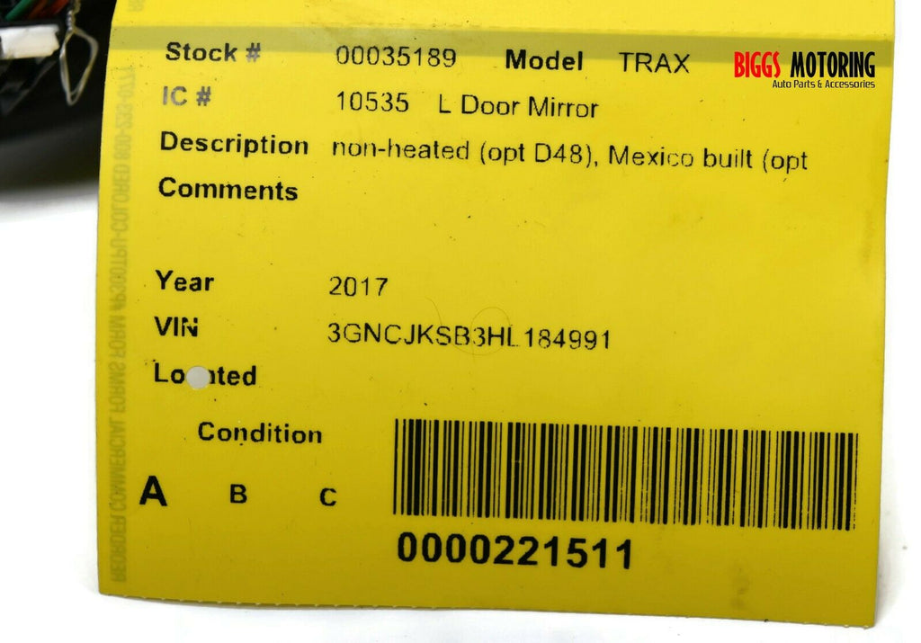 2017-2019 Chevy Trax Driver Left Side Power Door Mirror Black 35189