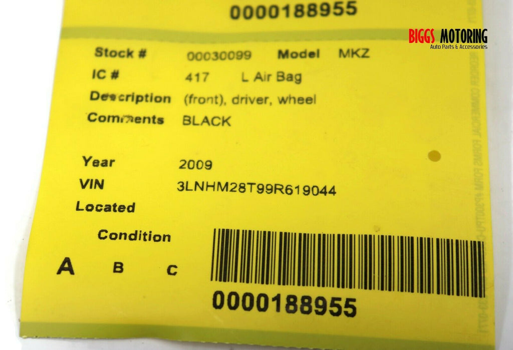 Lincoln MKZ Driver Side Steering Wheel Air Bag Black 30099